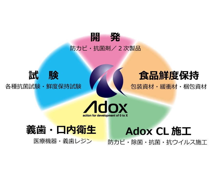 防カビ抗菌剤Adoxをはじめ、あらゆる環境下での抗菌・防カビ・防汚・防藻製品を開発。特許技術「エチレンガス分解排出機能」をはじめ、機能性マスターバッチでは国際特許取得を取得し、鮮度保持・抗菌・防カビ・消臭など、用途に合わせた機能性素材を提供しています。また、生分解・バイオマス原料などと組み合わせて、環境対応製品を作ることも可能です。フードロス・ごみ問題・資源枯渇など、地球環境を考えた製品作りにご活用下さい。